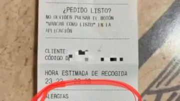 En el tuit se podÃa ver el ticket viral que adjuntó el usuario. En los comentarios podÃa leerse: "Alergias. Por favor que el repartidor deje el pedido en la puerta y se lleve la basura al salir".Â