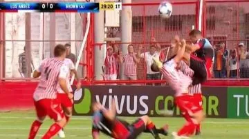 MartÃn Minadevino, de Brown de Adrogué, desfiguró a Gustavo Turraca, de Los Andes, después de ir con la punta del botÃn hacia arriba y marcarlo con los tapones en el rostro, durante un partido por la fecha 20 de la Primera B Nacional. ¡Mirá el video!