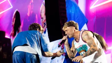 Otro de los momentos m谩s emotivos lleg贸 con La Joaqui, quien acompa帽贸 a Ian y Fede en "TikTok Remix". La escena se volvi贸 a煤n m谩s especial con la participaci贸n de Shaina, hija de La Joaqui, y Abrojito (Emma Demichelis), hija de Evangelina Anderson, quienes subieron al escenario y se ganaron la ovaci贸n del estadio, con Evangelina siguiendo todo desde las primeras filas.