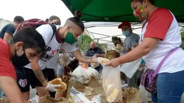 Se realiz贸 un "panazo" Plaza Miserere: repartieron mil kilos como protesta