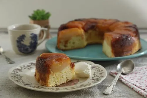Esta receta de torta invertida de peras es muy fácil de hacer y especial para acompañar el mate con una porción en este día lluvioso. ¡Poné la pava y a disfrutar!