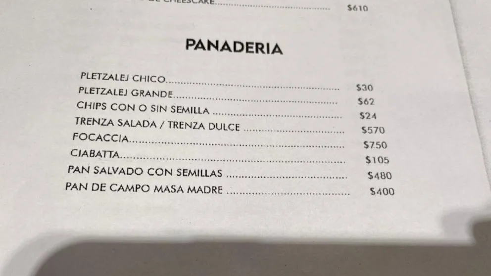 En la imagen podía verse el menú con los precios y un anuncio que decía: "Debido a la situación reinante, los precios pueden ser sujetos a modificación sin previo aviso".