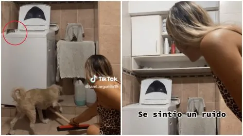 De esta manera, desde su cuenta de TikTok, la usuaria @tami.arguello19 mostró que primero su perro estaba olfateando debajo del lavarropas, y eso llama la atención de la protagonista del clip.