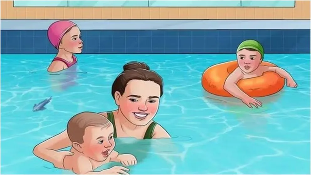 En este caso, los que decidan participar en este reto visual deberán encontrar en el primer golpe de vista cuál es el error de la imagen propuesta en la que se ve una familia adentro de una pileta.