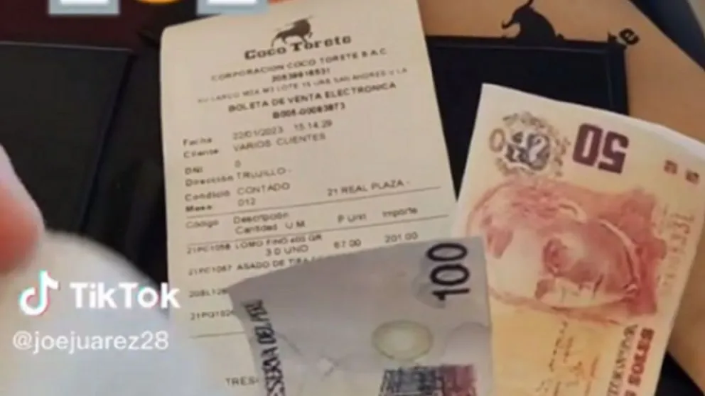 La historia que se volvió viral fue compartida por el usuario de TikTok @joejuarez28, quien subió un video a la red social mostrando la cuenta de la consumición de un cliente con billetes falsos acompañado con una leyenda que parecía indicar que lo habían estafado.