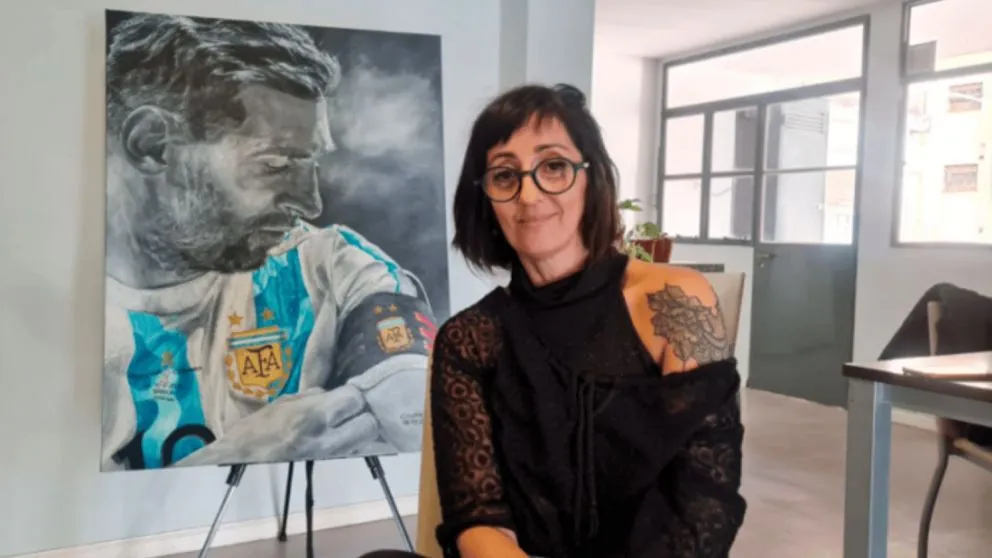 Una mujer argentina realizó un cuadro de Messi, se volvió viral y ahora sueña con ir a Qatar 2022