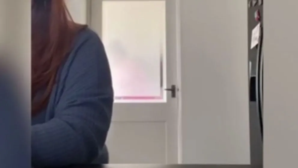 Se trata de Janet, que intentó no ser captada por la cámara pero salió de todas maneras. Hasta tuvo unos segundos para forcejear con la puerta que no podía cerrar. En ese momento su hija estalló de risa y el vídeo se volvió viral.
