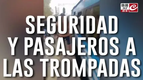Las imágenes, que fueron registradas en una de las estaciones del Ferrocarril Roca, muestran el momento en el que un grupo de pasajeros se enfrenta a personal de seguridad.
