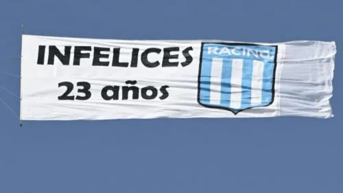 La picante bandera de Racing, con chicana incluida, que sobrevoló el estadio de Independiente en pleno clásico: "Infelices 23 años"