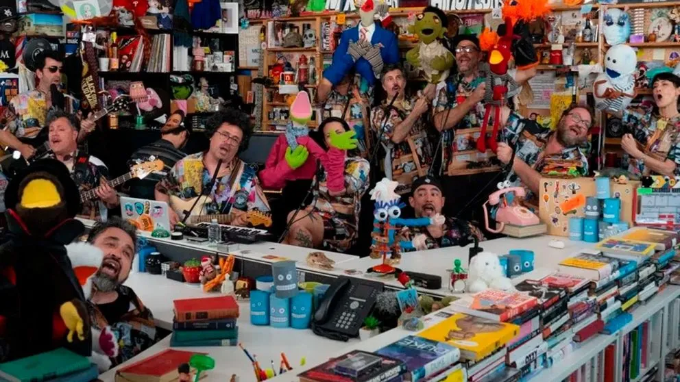 El Tiny Desk, producido por National Public Radio (NPR), es un formato en el que artistas de distintos géneros interpretan versiones íntimas de sus canciones. Pero esta vez, la oficina musical se transformó en un noticiero de títeres, con los personajes de “31 Minutos” —Tulio Triviño, Juan Carlos Bodoque y compañía— interpretando temas clásicos del programa y lanzando afiladas bromas sobre la migración, la política estadounidense y el rol de los medios.