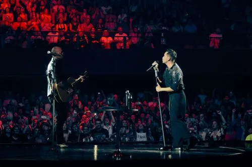 La noche comenzó con la potente interpretación de "Es Ahora", marcando el inicio de un show de más de dos horas. A lo largo de la velada, los artistas fusionaron sus voces, acompañados por sus respectivas bandas, creando un ambiente vibrante y lleno de energía.