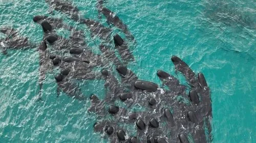 Encontraron 51 ballenas varadas en una playa de Australia y no lograron rescatarlas