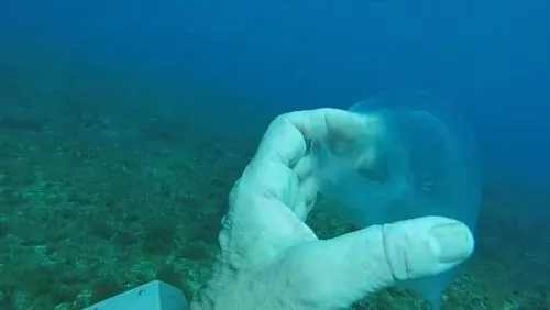 Tras consultar con expertos del Instituto Oceánico Internacional de Malta, descubrió que lo que vio fue un tipo de salpa, una especie de los taliáceos que se desplaza por contracción, bombeando agua a través de su gelatinoso cuerpo.