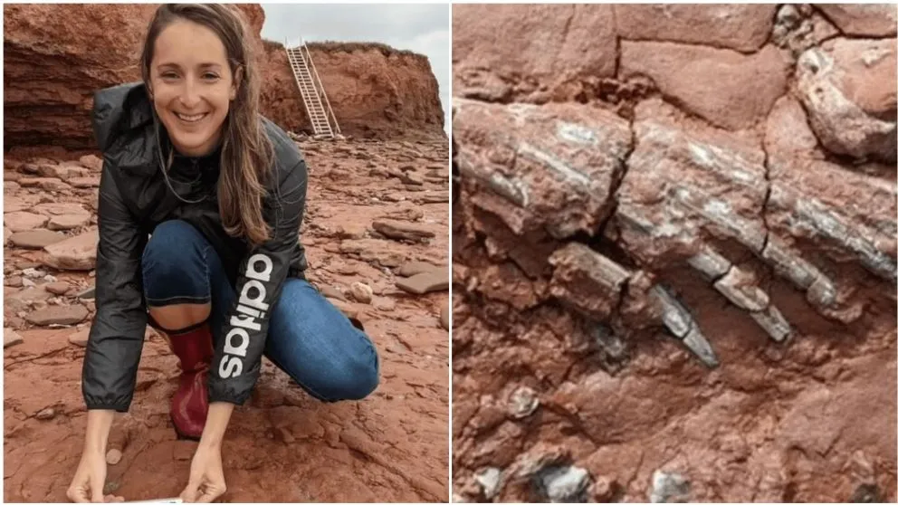 Se trata de Lisa Cormier, una docente canadiense que estaba con su mascota en la isla del Príncipe Eduardo y se encontró con estos restos fosilizados de un animal sin precedentes.