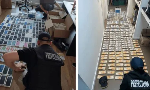 Allí, como resultado de los procedimientos los uniformados secuestraron una importante cantidad de elementos electrónicos marca iPhone, indumentaria, dinero en efectivo en distintas monedas y más elementos de interés para la causa.