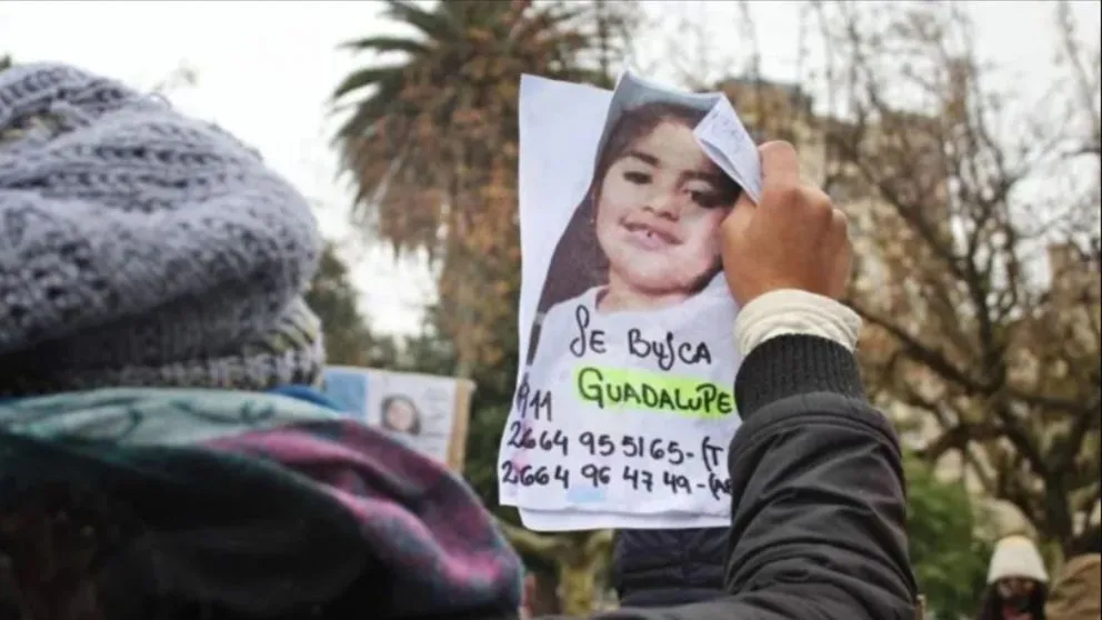 Guadalupe desapareció el 14 de junio de 2021 cuando jugaba en la puerta de su casa en el barrio 544 viviendas de la ciudad de San Luis. La niña, de 6 años, es de tez trigueña y al momento de su desaparición tenía el cabello lacio por debajo de los hombros y un lunar en la mejilla izquierda.