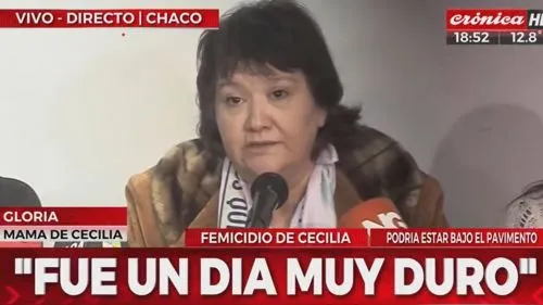 "Fue un día muy duro para mí", sostuvo Gloria Romero, la madre de Cecilia Strzyzowski, la joven desaparecida en Resistencia, cuya búsqueda es investigada como femicidio y por el que hay siete detenidos, en la conferencia de prensa que brindó luego de reconocer una serie de objetos que fueron secuestrados en el marco de los allanamientos, y convocó a una nueva marcha para el domingo próximo.