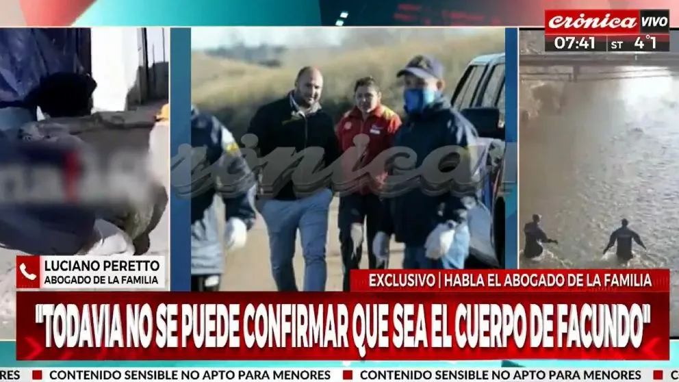 Para Peretto, si se confirma que es Facundo, "no existe la posibilidad de que se haya ahogado allí" ni de que haya llegado hasta el lugar por sus propios medios. "Si es Facundo, es muy probable que el cuerpo haya llegado por medio de la marea o trasladado producto del ocultamiento de una escena del crimen", consideró.