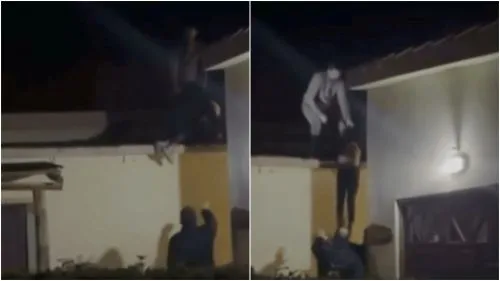 El delincuente fue atrapado por el dueño de una casa, que lo sorprendió en el techo de una casa. El propietario, visiblemente indignado, estuvo a punto de arrojar al ladrón al suelo, según señalaron medios locales.