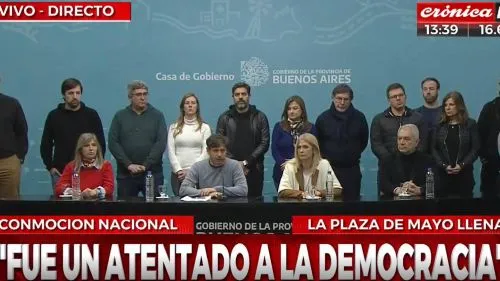 Ante ese panorama de horror por lo acontecido, se convocó de urgencia a la oposición a Plaza de Mayo pararepudiar sin dobleces y sin grises lo que ocurrió, porque el ataqueno es producto de un desquiciado, sino parte de un “contexto” en el que crecieron “los discursos de odio”