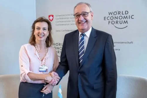 Otra de las reuniones bilaterales de la Canciller fue con la Secretaria de Estado para Asuntos Económicos de la Confederación Suiza, Helene Budliger Artieda. Durante la reunión, dialogaron sobre las oportunidades para potenciar las inversiones de la nación europea.