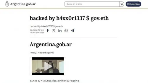 De hecho, en algunas secciones de los portales oficiales del Gobierno se podían observar videos del rapero Homero El Mero Mero, mensajes referidos a un nuevo hackeo e incluso insultos hacia al presidente de la nación, Javier Milei.