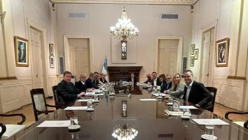 En el marco de la medida de fuerza, el jefe de Gabinete, Nicolás Posse y la secretaria general de la Presidencia, Karina Milei, encabezaron el encuentro sin la presencia del Jefe de Estado, quien demoró su llegada a Casa de Gobierno por "otras reuniones de agenda".