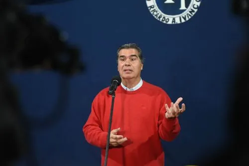 Capitanich fue el primero en sufragar en su mesa, vestido con el pullover rojo que utiliza en todas las elecciones, para luego tomar contacto con los medios de comunicación que se encontraban en el lugar.