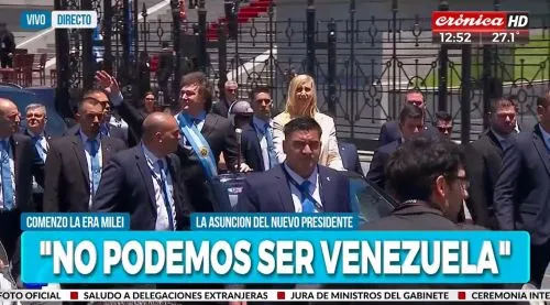 Luego del acto, finalizado por la flamante vicepresidenta Victoria Villarruel, Milei se subió al auto descapotable junto a su hermana, Karina Milei, y recorrió las calles de la Ciudad de Buenos Aires.