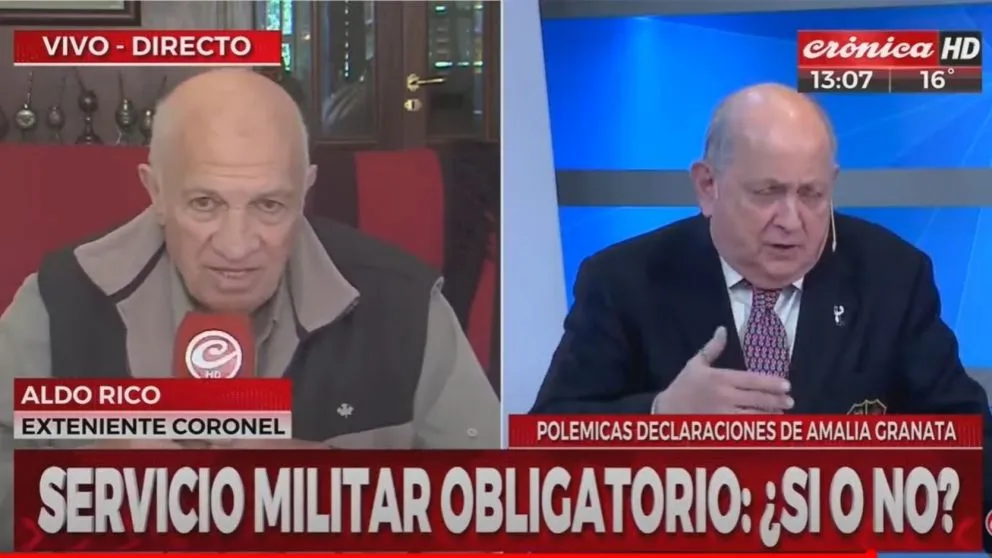 "Encaminaría la conducta de los jóvenes en el país". Con ese argumento, la diputada provincial de Santa Fe, Amalia Granata, se mostró a favor de volver a implementar el Servicio Militar Obligatorio en la Argentina. Su propuesta generó fuertes repercusiones y este martes fue el turno del ex teniente coronel Aldo Rico, que rechazó la idea de la legisladora. Así lo hizo en una entrevista con Chiche Gelblung por Crónica HD.