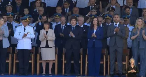 También asistieron la ministra de Seguridad, Patricia Bullrich; la secretaria General de la Presidencia, Karina Milei; el vocero presidencial, Manuel Adorni; el jefe de la Escuela de Cadetes, el Comisario General Luis Alejandro Rolle; y el subjefe, Comisario General Mariano José Giuffra.
