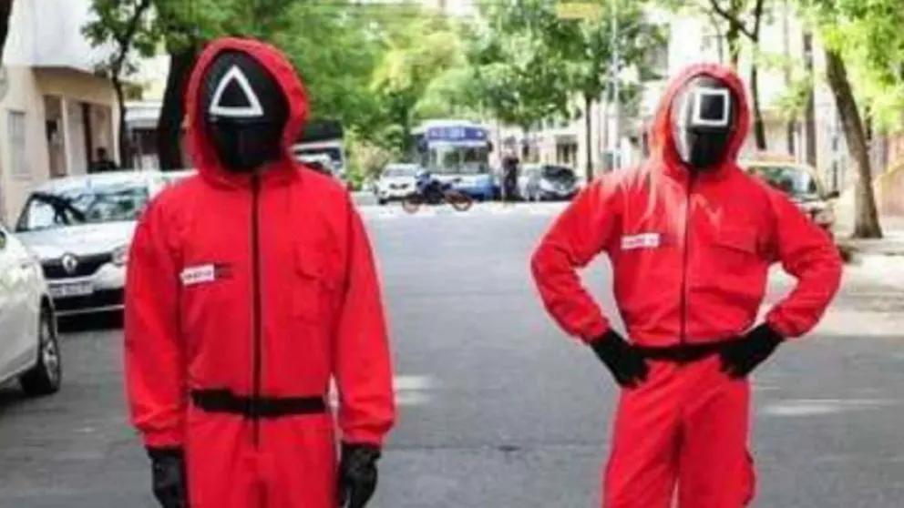 Así es como van con algo que llame la atención, ya sea un disfraz o un elemento. Como primera perlita, a primera hora se vio un hombre vestido de chancho. Ahora, aparecieron en el colegio donde votó Leandro Santoro, dos hombres disfrazados de la serie del momento de Netflix: El Juego del Calamar.