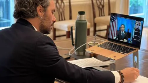 El canciller Santiago Cafiero participó este martes de un encuentro virtual convocado por el Secretario de Estado de Estados Unidos, Antony Blinken, para debatir distintas iniciativas para poner fin a la guerra entre Rusia y Ucrania, y establecer una paz duradera en este país, de acuerdo con los principios contenidos en la Carta de la ONU.