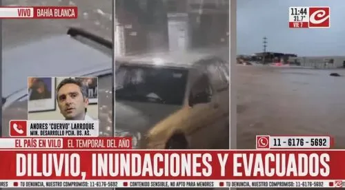 El ministro de Desarrollo de la Comunidad bonaerense, Andrés “Cuervo” Larroque, confirmó que desde la gestión de Axel Kicillof trabajan en coordinación con el Gobierno nacional para paliar las consecuencias del fuerte temporal y las inundaciones que afectan este viernes a la ciudad de Bahía Blanca y alrededores.