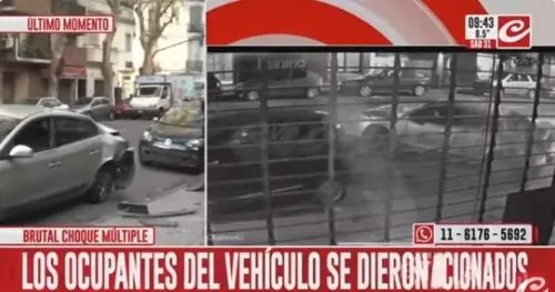 Un violento choque múltiple tuvo lugar en el barrio de Almagro, en donde un auto -con tres jóvenes en su interior- chocó a otros tres y una motocicleta que estaban estacionados sobre avenida Medrano. Las personas que iban dentro del rodado se dieron a la fuga, dejando “tirado” a su vehículo.