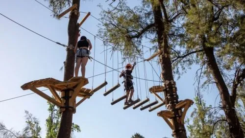 A pocos minutos del casco urbano de Dique Luján, se encuentra el parque aéreo más grande de la región. Actualmente, aquí encontrarás más de 105 juegos en altura, emocionantes tirolesas, torre de caída libre y espacios especializados para los más pequeños. Vale la pena mencionar que cada una de las aventuras están adaptadas a todas las edades y resistencia física del visitante.