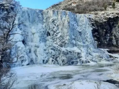 Una cascada de 30 metros se congeló por el frío extremo que causó la ola polar