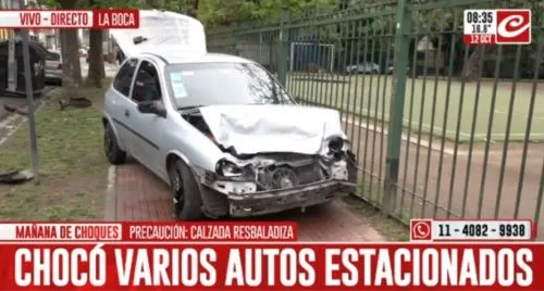 Sábado accidentado: la ciudad de Buenos Aires amaneció este feriado con diversos choques en algunos barrios, entre los cuales se destaca el impacto provocado por un automóvil Chevrolet Corsa gris, cuyo conductor supuestamente iba en contramano y colisionó a una importante velocidad a dos rodados que estaban estacionados sobre la calle.